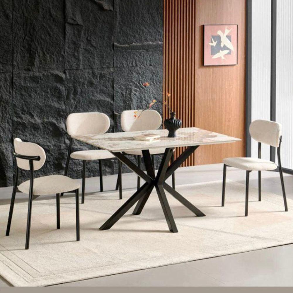 مكون من طاولة سفرة و4كراسي دون مساند ذراعين وتنجيد فاخر،
