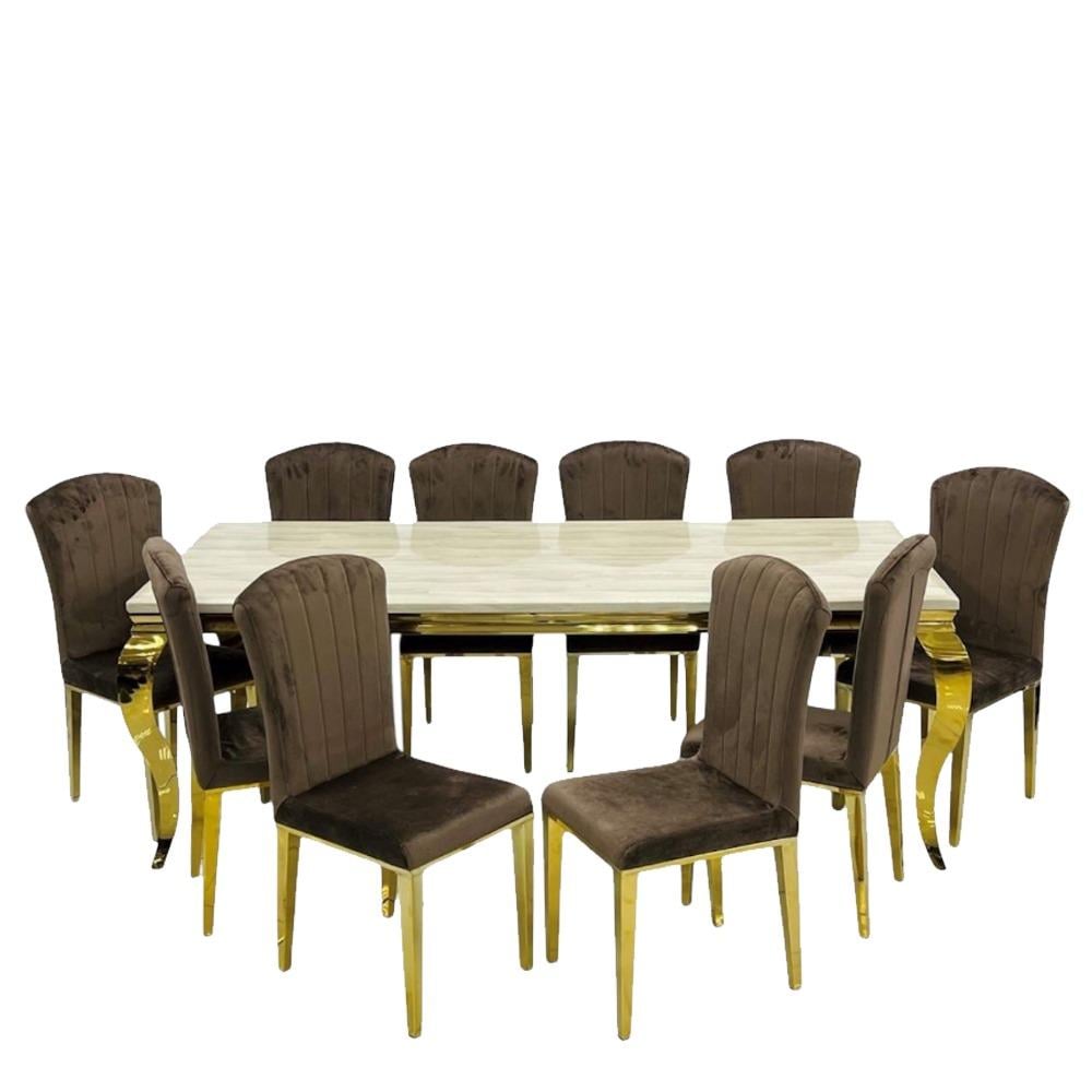 مكون من طاولة سفرة و 10 كراسي دون مساند ذراعين وتنجيد فاخر،