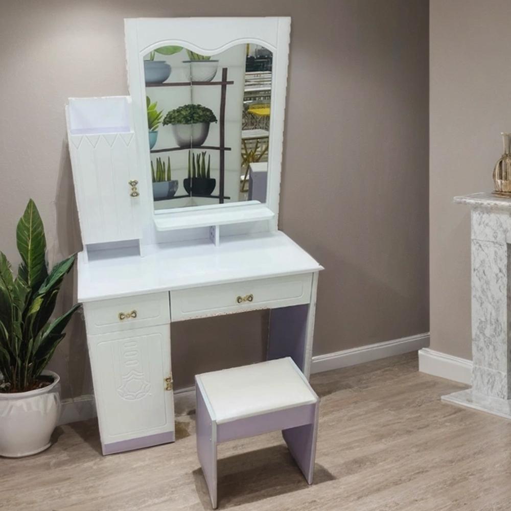 توفر الخزانة مساحة وفيرة لتخزين المستحضرات والمجوهرات وأدوات التجميل، مع إمكانية الوصول السهل إليها أثناء التسريح.