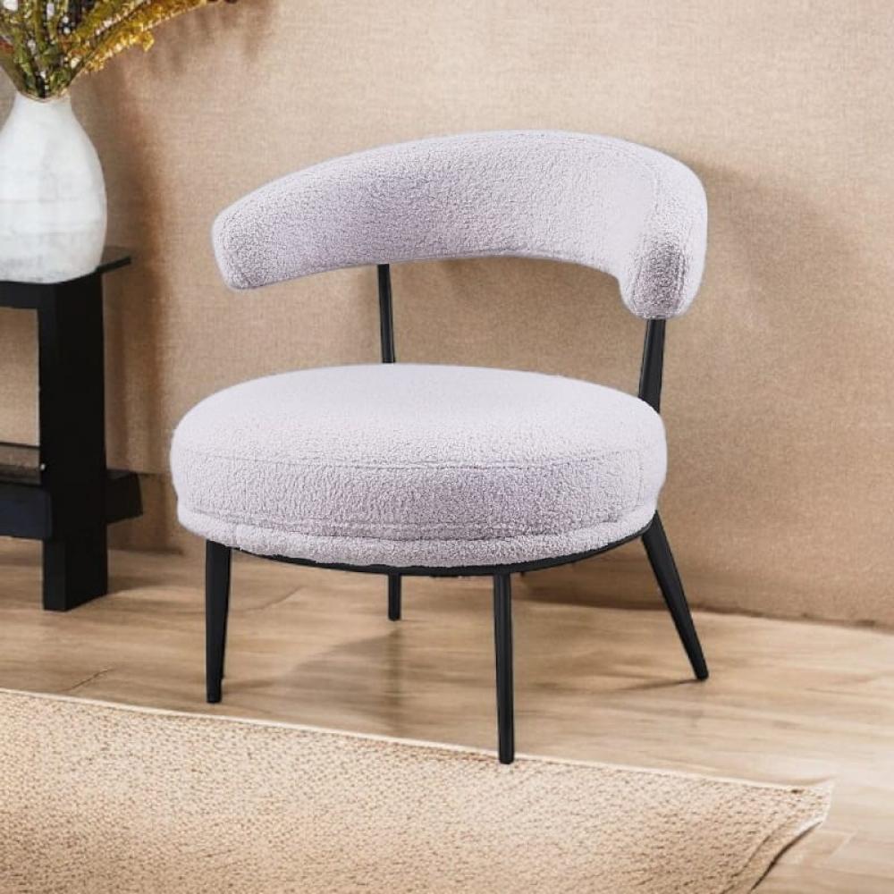 - تصميم فاخر: يتميز بتنجيد فرو بوكلية ناعم يمنح الكرسي مظهراً راقياً ولمسة ناعمة.