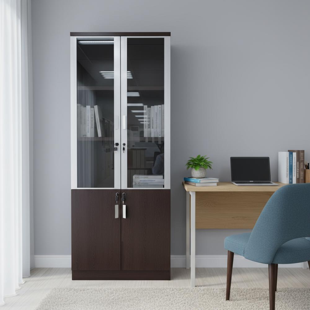 ضف لمسة من الرقي والتنظيم إلى مكتبك أو منزلك مع دولاب التخزين المكتبي المصمم ببابين تجمع بين الزجاج الشفاف والخشب المغلق. تصميم متين يوفر لك عرض المحتويات بأناقة في الجزء العلوي وتخزين آمن ومغلق في الجزء السفلي.
